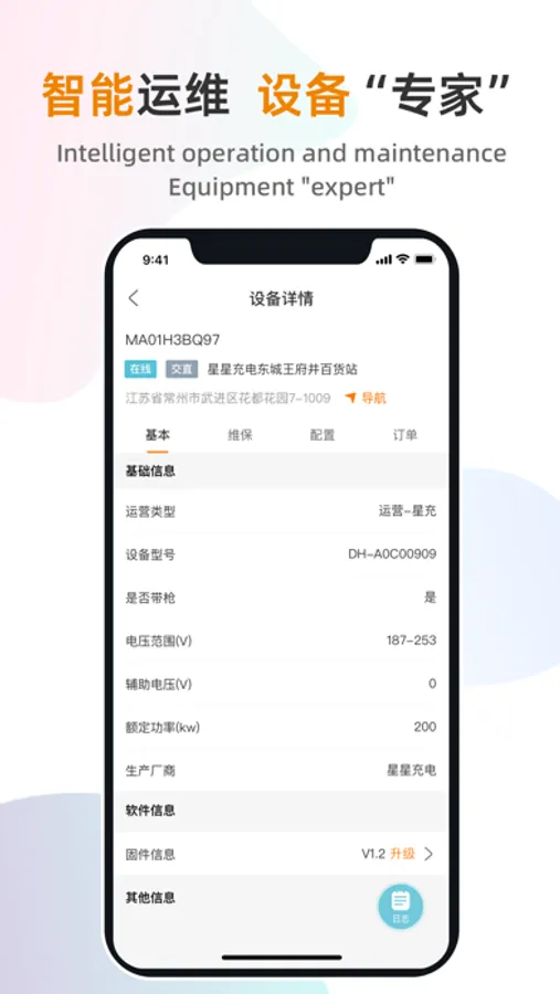 Provide intelligent operation and maintenance services for Star Charge and roaming devices, support to query operating data and log data, and implement firmware upgrade, configuration deliver and debug through Bluetooth/mobile network.