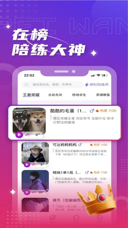 陪玩电竞游戏陪练平台软件APP,提供:无畏契约陪玩,瓦罗兰特陪玩,卡拉彼丘陪玩,王者陪玩,王者荣耀陪玩,lol手游陪玩、英雄联盟陪玩、永劫无间陪玩、王者荣耀陪玩、和平精英陪玩、吃鸡绝地求生pubg陪玩、云顶之弈陪玩、Csgo陪玩、Apex英雄陪玩、CF穿越火线陪玩、Steam陪玩、哈利波特陪玩、金铲铲之战陪玩、DNF陪玩、原神陪玩,堡垒之夜陪玩,剑网3陪玩,球球大作战陪玩,光遇陪玩,决战平安京陪玩,穿越火线手游陪玩,第五人格陪玩,王者国际服陪玩,美服陪玩,欧服陪玩,国际服陪玩等热门电竞游戏兼职陪玩陪练开黑服务。