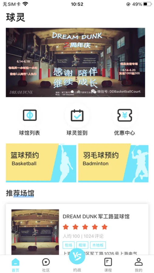 球灵是一款为广大篮球羽毛球等体育运动爱好者打造的场馆预约以及约球约战的平台。
