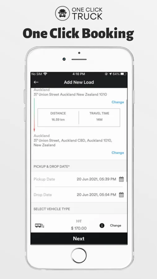 2. Sign up either via the mobile app or online via the website https://oneclicktruck.com