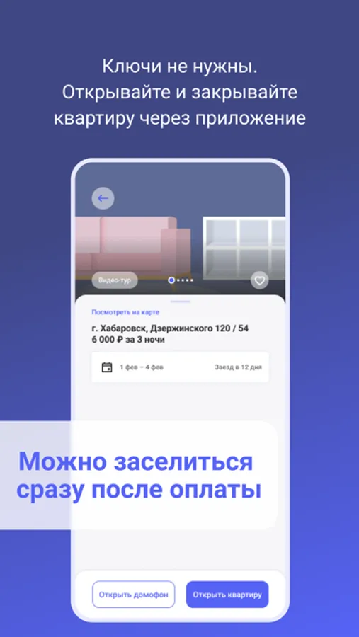 - Гарантия бесконтактного заселения: беспокоиться не о чем — Apart-sharing гарантирует успешное заселение при бронировании жилья через приложение.