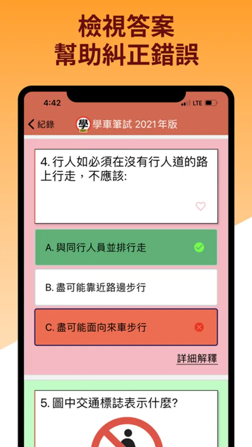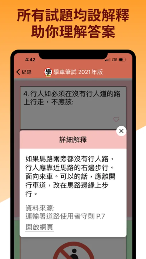 .重溫試題時,可按掣顯示詳細解釋以及在《道路使用者守則》的位置,方便用戶深入了解。有根有據無需估估吓。