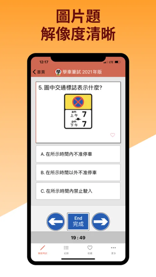 .此應用程式包含了超過800條題目,模擬運輸署「甲部電腦筆試」,每次限時20分鐘,隨機抽出20條三選一的選擇題,完成後即時顯示結果。