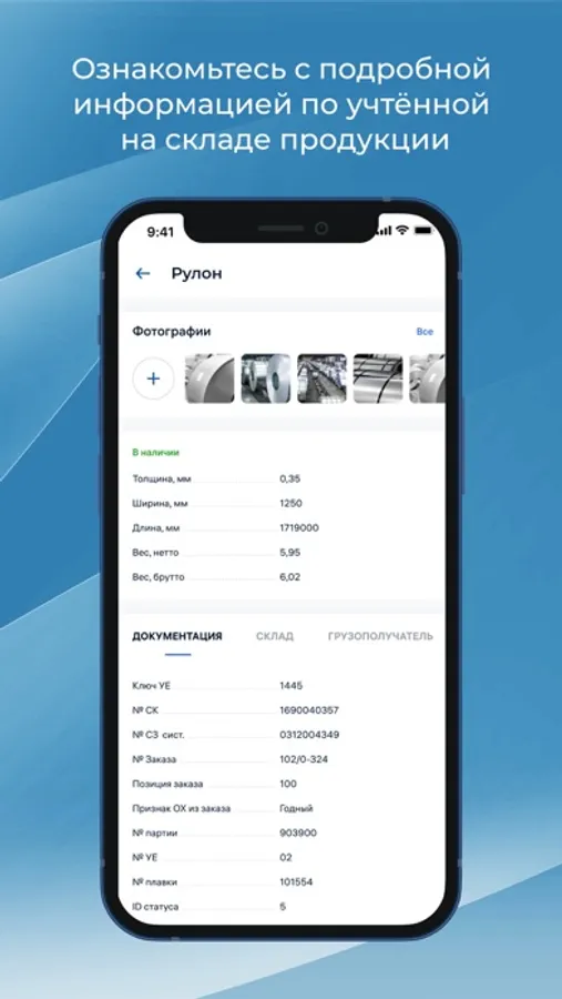 Приложение позволяет отслеживать оперативное наличие металла на удаленных складах клиентов - хранителей. Функционал приложения позволяет идентифицировать учетные единицы, при помощи сканирования бирок на продукции ПАО Северсталь, получать уведомления об отгрузке металла в сторону клиента хранителя, а так же об истечении срока хранения металла до выкупа