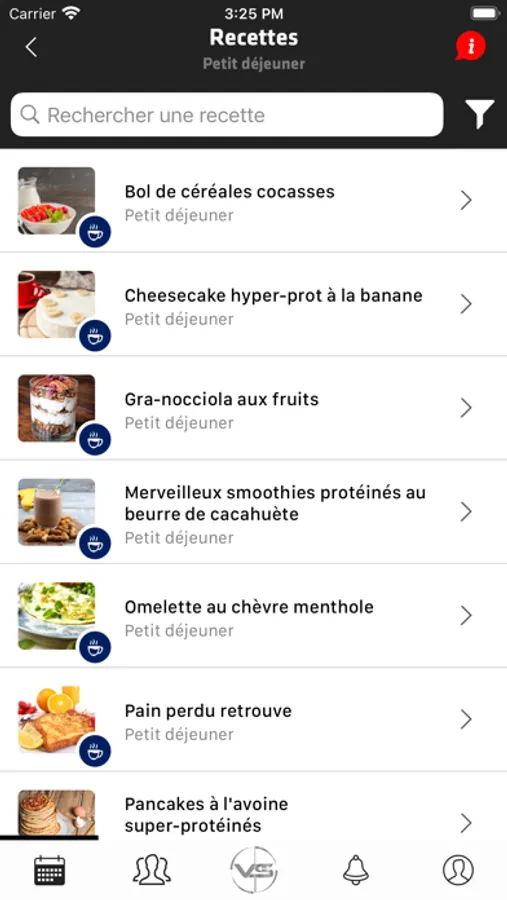 Sur celui-ci vous retrouverez la planification de vos repas et séances créés en amont par votre coach, en réponse à vos objectifs.