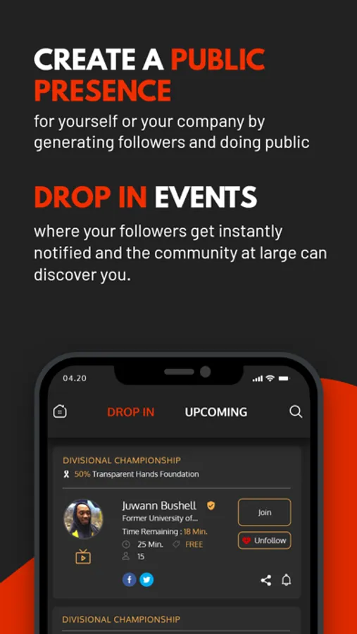 Building your community of followers, follower others, do instant or future Drop-In Events, and continue the conversation via post-event chat rooms. NGauge’s unique format incorporating our exclusive JUMP and JUMP-LINE features, plus interactive polling, make interacting with your community more powerful than ever. And with multiple ways of engagement, from joining as a full audio/video member or instead joining via our NGauge Radio where you’re essentially an audio-only participant, but one that can still JUMP to the Spotlight or respond to interactive polls. You can also send your followers text, audio, and video messages, as well as promote your other social media platform activities. The application are endless.