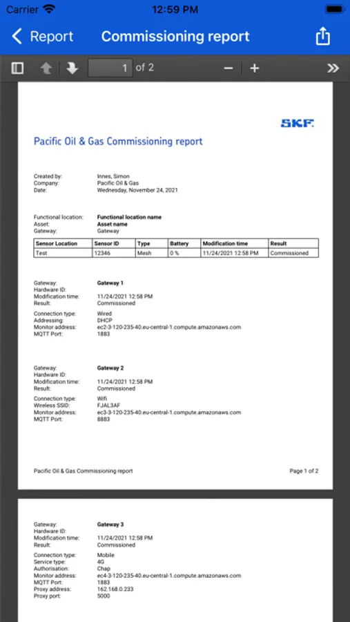 The IMx-1 System provides low cost condition monitoring of machinery via battery powered wireless sensors and an externally powered gateway that controls the sensors and passes their measurement data to the back end for reporting and analysis. Enlight Collect Manager connects to the sensors and gateways using NFC and Bluetooth Low Energy in order to commission them or report their status and a commissioning report in PDF format may be generated and shared.