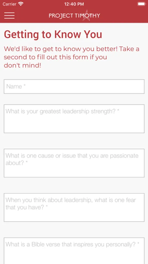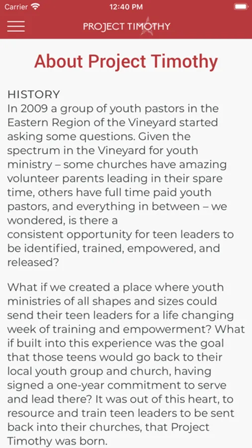 We are so excited that you have decided to participate in Virtual Project Timothy! Download the app today and get started with the "build up" leading up to the event. You will have access to:
