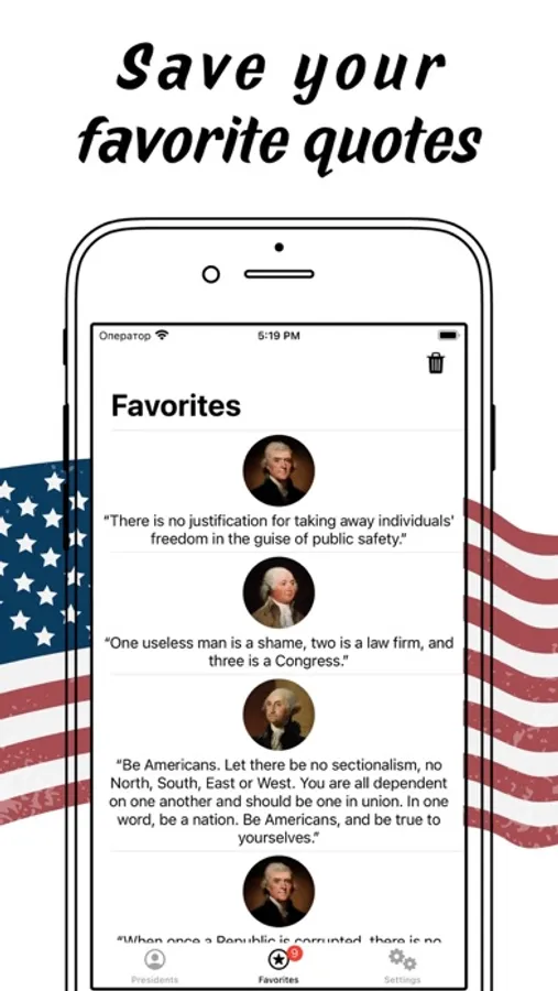 In this application, 46 US presidents are waiting for you, their fiery quotes will not leave you indifferent. Read their powerful speeches, be inspired, motivated, energized and be victors in life.