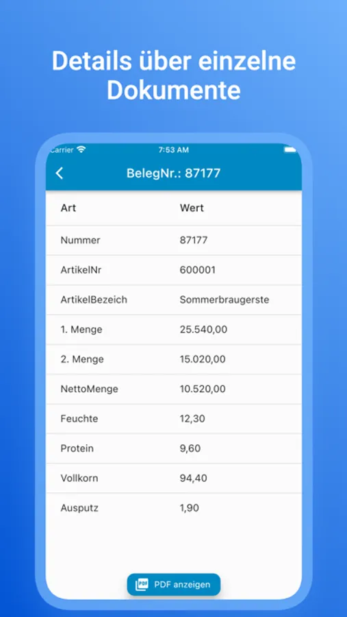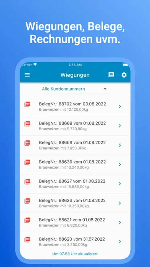 - Lieferungen, Wiegungen, Belege und vieles mehr abrufen