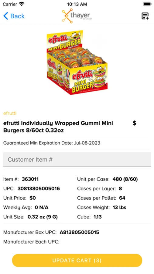 · Get instant access to Thayer's real-time inventory, including when out of stocks are due in.