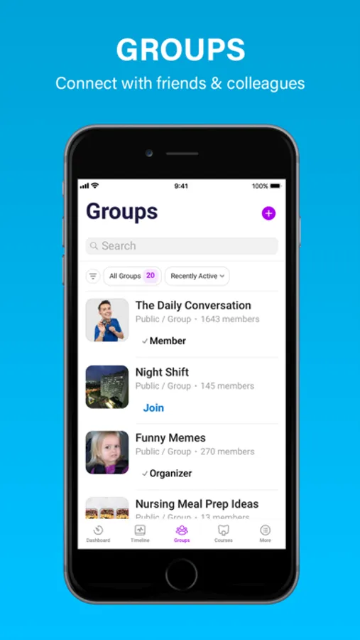 Join your friends, colleagues, and cohort together in Groups! Groups are the perfect way to build your tribe and engage with like-minded nurses and nursing students. Create or join Groups for your hospital unit, nursing school, nursing specialty, peer support, or professional interest.