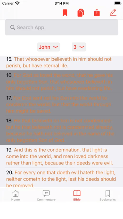 -Bookmark, highlight or copy any Bible verse(s).