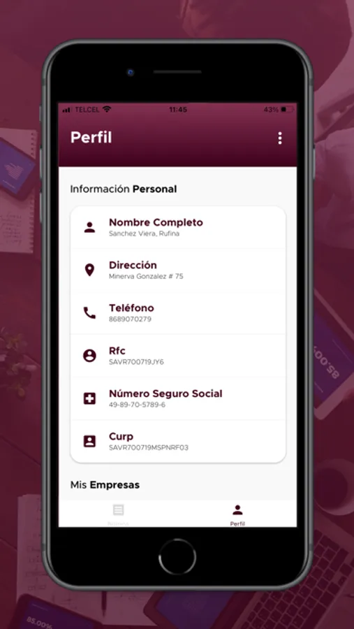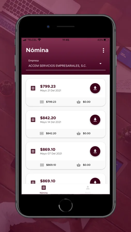 Visualiza y descarga tus recibos de nómina directamente dentro de la app, además de visualizar tu perfil con CURP, contacto y más.