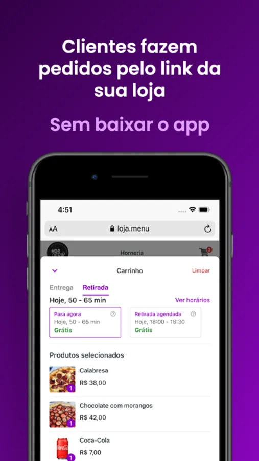 3) Através deste link, seus clientes montarão seus carrinhos, e farão seus pedidos (sem precisar baixar aplicativo).