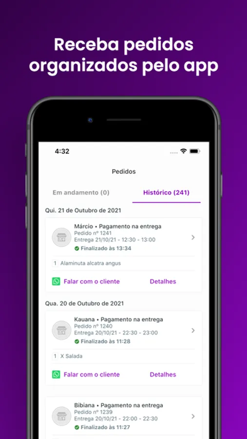 - Acesso ao histórico de pedidos de cada cliente