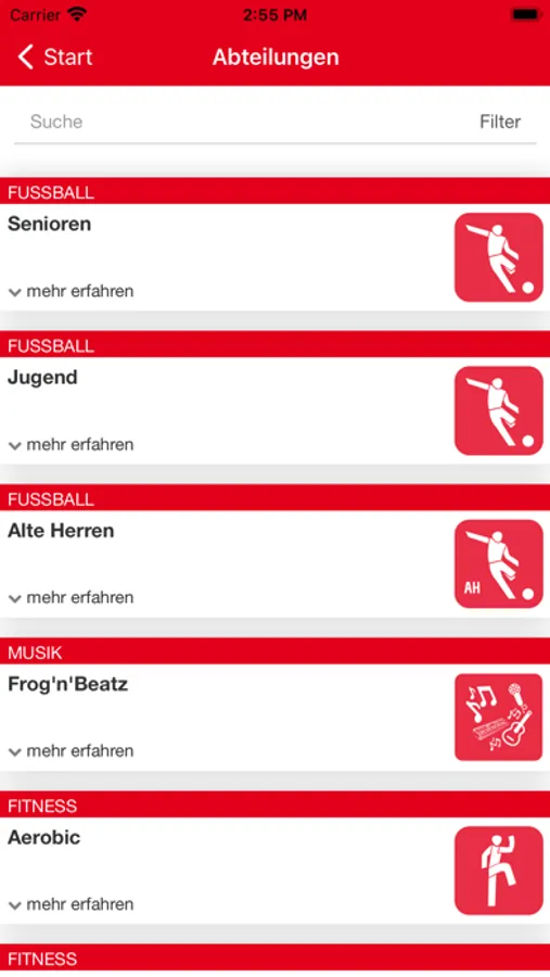 In der App können Sie unseren Aktivitäten folgen, sich über Termine, Gruppen und Mannschaften informieren. Außerdem können Sie mit den Verantwortlichen in Kontakt treten oder sich in den Chaträumen mit den einzelnen Gruppen austauschen.
