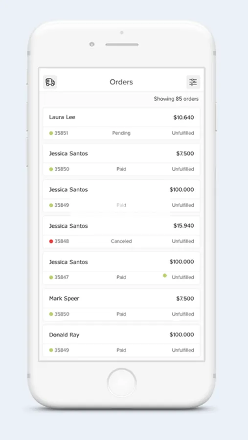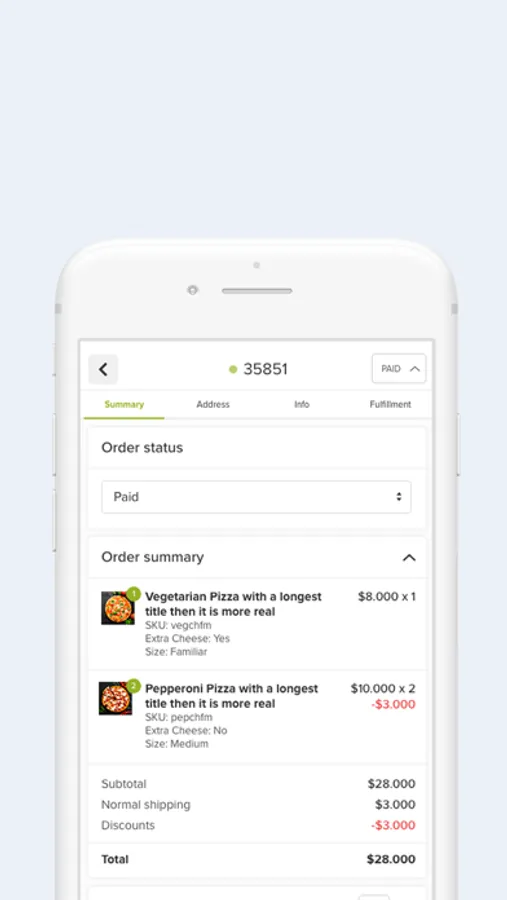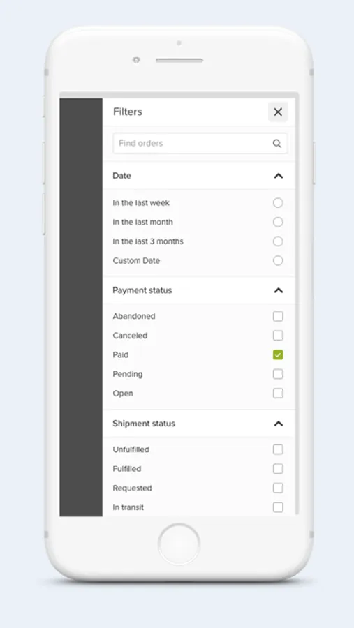 View, search and filter through your store's orders, see their details and update their history, payment and fulfillment statuses and always be up-to-date with notifications informing you of any new order or status change.
