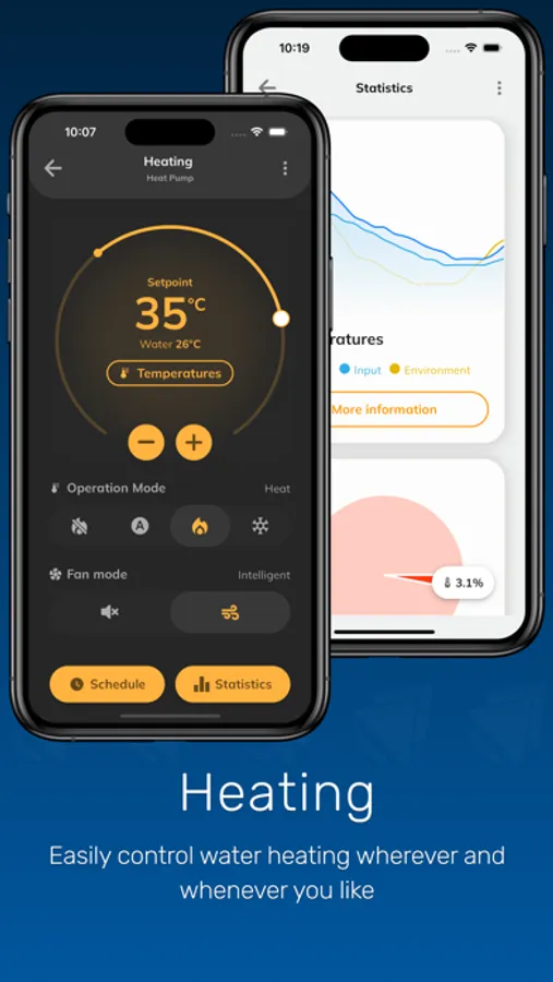 * Adjust the pool or boiler heating with ease, setting the perfect temperature directly from the app, wherever you are.