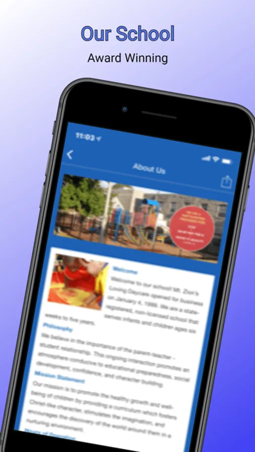 Welcome to our School! Located in the Forest Manor community on Indianapolis’ northeast side, Mt. Zion’s Loving Daycare opened on January 4, 1999. We are a state-registered (non-licensed) ministry of Mt. Zion Apostolic Church, serving infants and children ages 6 weeks to 5 years, and school-agers 6-11. The daycare is inspected on a regular basis to ensure compliance to state standards of cleanliness and safe operations. Mt. Zion’s Loving Daycare is an equal opportunity provider and employer and does not discriminate on the basis of race, color, national or ethnic origin, religion, or disability in its admissions or hiring policies.