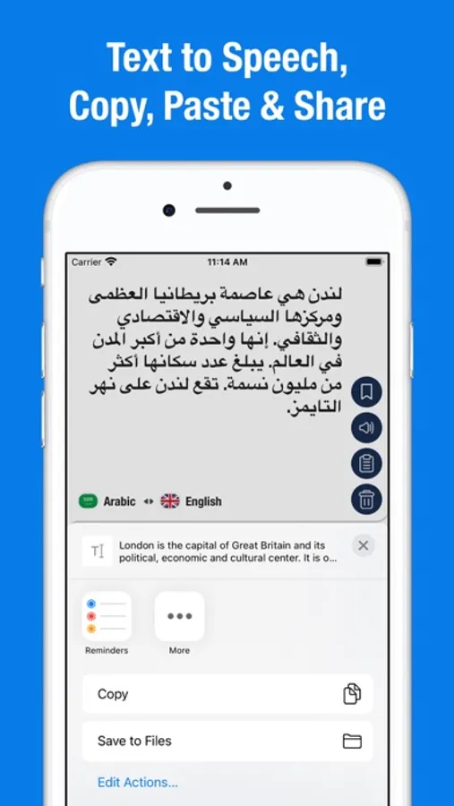 It is a translation tool that helps you break down language barriers. Excellent app for all who makes the first steps in learning Arabic. Intuitive interface, easy navigation, quick result. Begin conversations confidently!