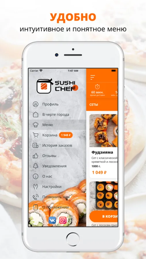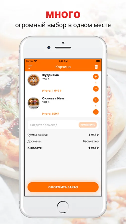 Разнообразное меню! У нас работают лучшие повара, а курьеры приятно порадуют вежливостью и быстрой доставкой.