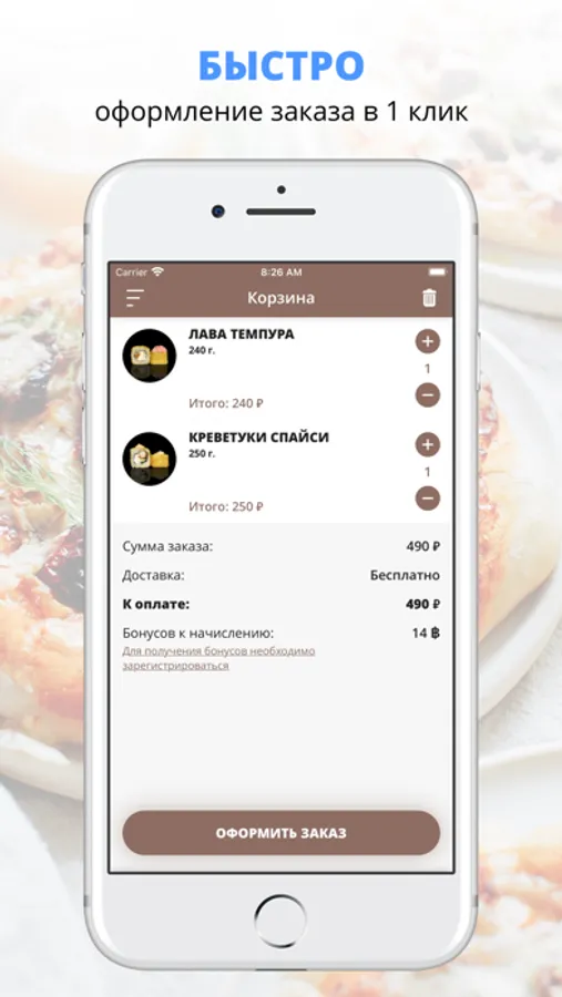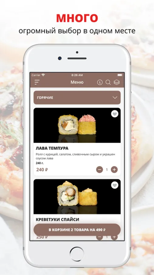 Скачивайте наше приложение, оформляйте заказ и наслаждайтесь любимой едой, где бы Вы ни были! Приятного аппетита!