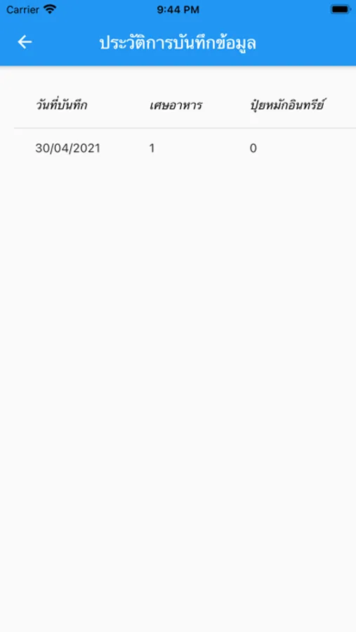 แอพพลิเคชั่นสำหรับจดบันทึก การจัดการขยะในครัวเรือน แบบรายวัน และสรุปผล
