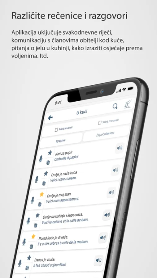Aplikacija također nudi mogućnost preslušavanja rečenice s govornika francuskog jezika.