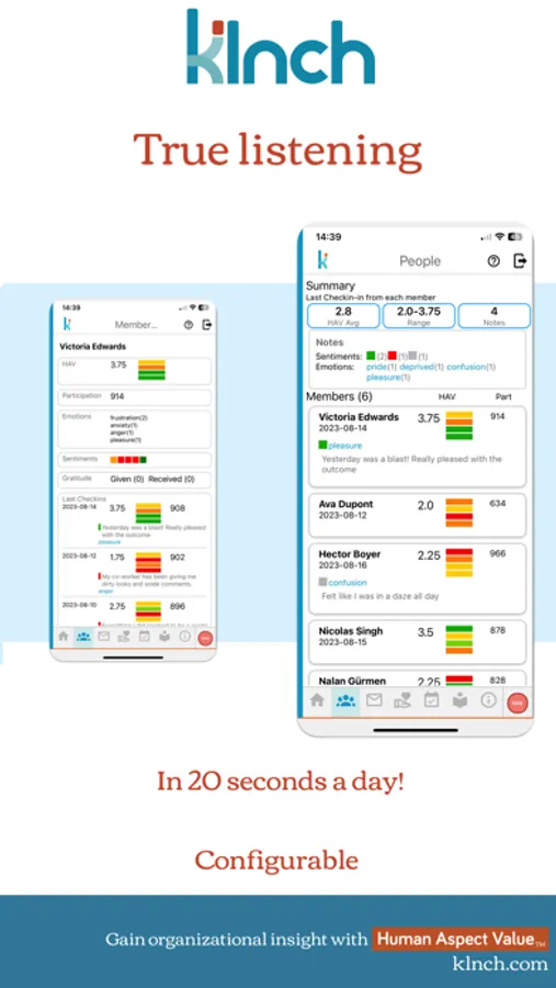 Organizations need to prioritize how their people are doing. Our AI powered mobile app can reveal insight into how people are feeling.