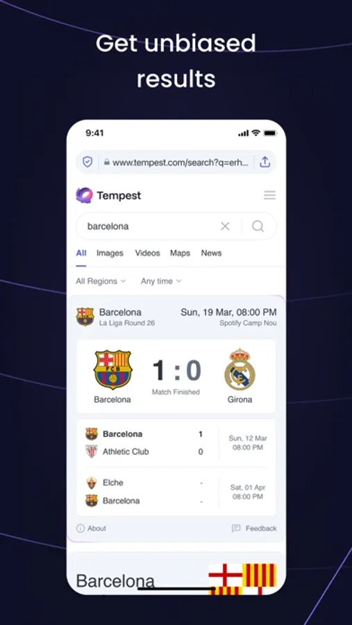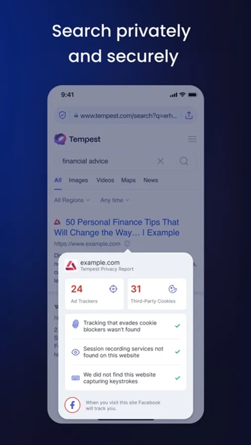 We integrate Tempest Search right into our browser. That means you automatically eliminate trackers and search history, ensuring you get the most private and relevant results the moment you go online.