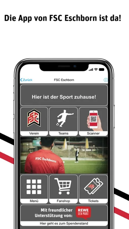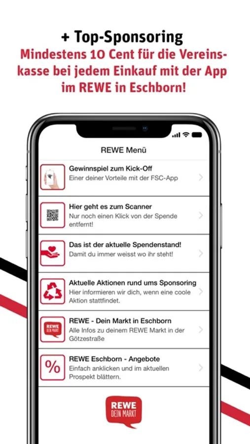 Mit der App kannst du den Verein sogar finanziell unterstützen, indem du beim Einkauf im REWE Markt in Eschborn in der Götzenstraße mit dem integrierten Scanner den QR-Code an der Kasse scannst. Ohne zusätzliche Kosten und ohne Angabe persönlicher Daten!