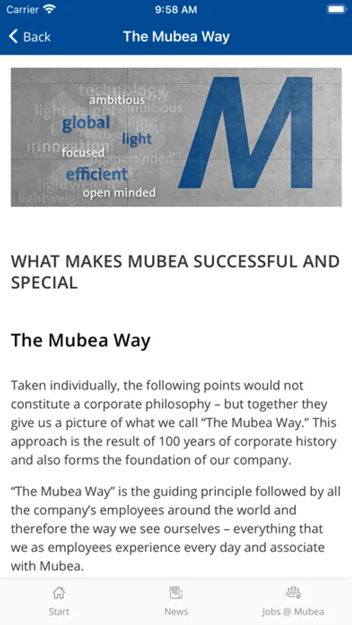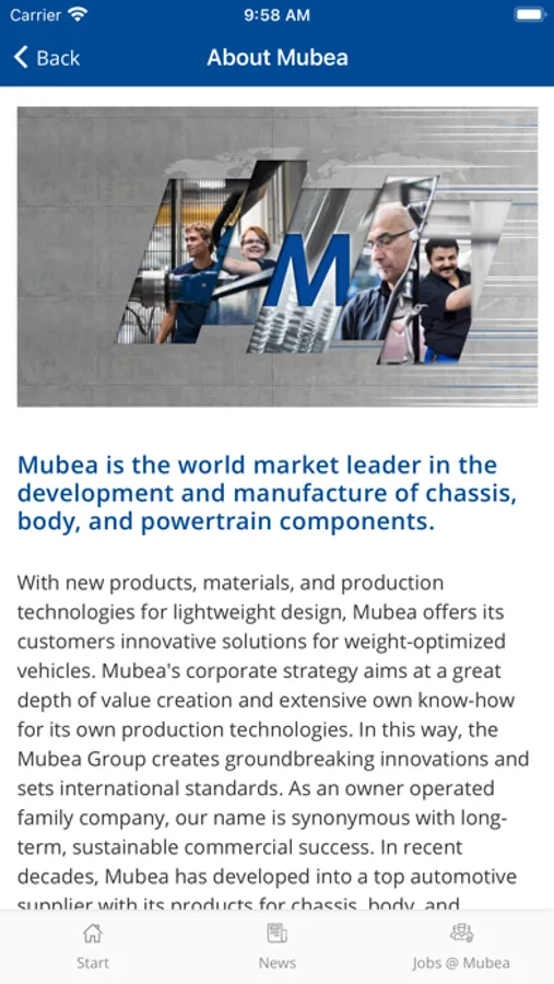 WE@Mubea is the central communication platform for all worldwide employees, partners, customers, and all stakeholders of the Mubea Group. With WE@Mubea, the company promotes the networking of global communication across national borders and hierarchical levels. WE@Mubea provides continuously updated information on: