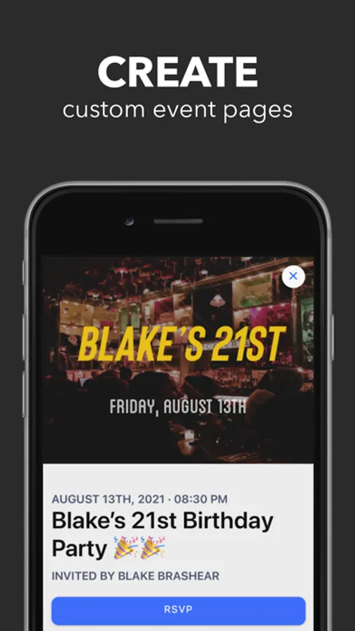 Seven allows organizers to build an event page and send invites via text, link sharing, or social media!