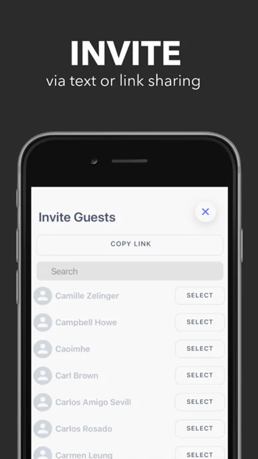 After every event, Seven adds the attendees to each other's Seven network so they can invite each other to events in the future without having to exchange phone numbers!