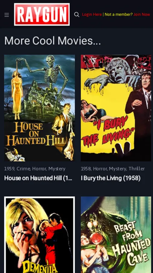 Over Hundreds of Horrible Horror, Weird Sci-Fi, Campy Cult, Bad Kung Fu, Wild Wild Westerns, Drive Ins/Matinees, Double Feature Creatures, Classy Classics, Radio Gaga, Strange Documentaries and more. Secret code movie challenge. Join the Ray Gun Club.