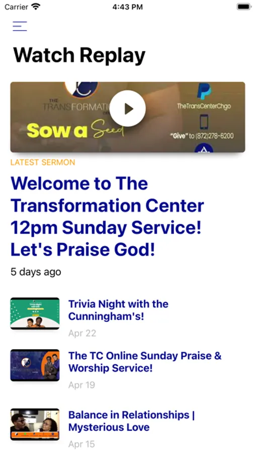 Access to the latest content from The Transformation Center Chicago and our leaders, Apostle Kevin & Pastor Deirdre Cunningham. Stay connected and updated on all things happening here with our online family. Receive instant inspiration and encouragment - anytime, anywhere. Our worship experiences are broadcasted live from Chicago, IL.