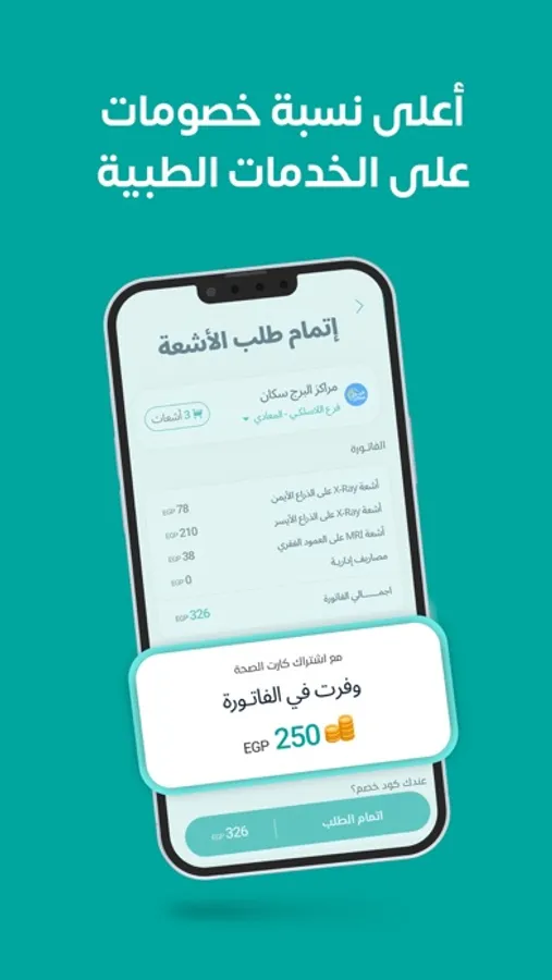 كارت الصحة يقدم لك خصومات فورية تصل إلى 70٪ من خلال شبكتنا من مقدمي الخدمات الطبية في مصر. من خلال كارت الصحة يمكنك البحث عن أقرب صيدلية، مستشفى، مختبر أو مراكز الأشعة ، وتوفير ما يصل إلى آلاف الجنيهات سنوياً. يمكنك أيضًا تحميل وحفظ جميع سجلاتك الطبية مثل: الروشتتات، نتائج التحاليل والأشعة والسجلات الطبية اليومية في ملف طبي خاص بك يمكن الوصول إليه في أي وقت. مع إمكانية قراءة الروشتة الطبية في أقل وقت وبدون تعقيدات.
