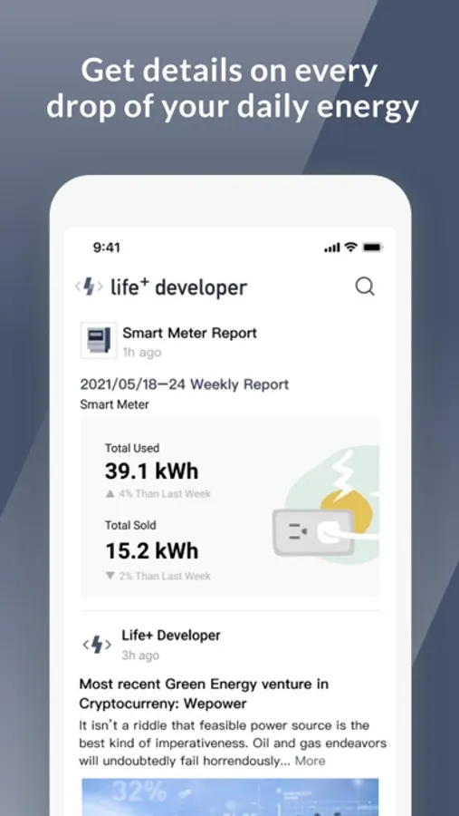 News feed delivers upgraded experience to easily manage your electricity data. The UI card design helps you control smart home appliances with a single tap on your smartphone.