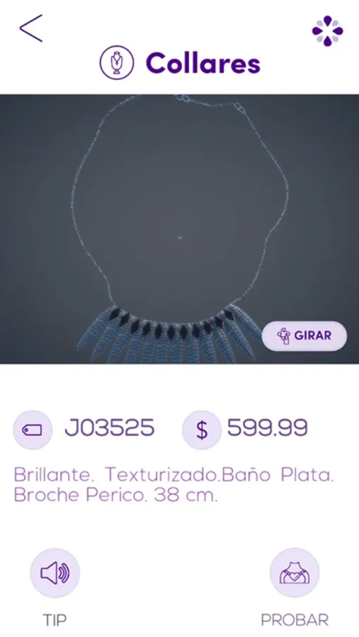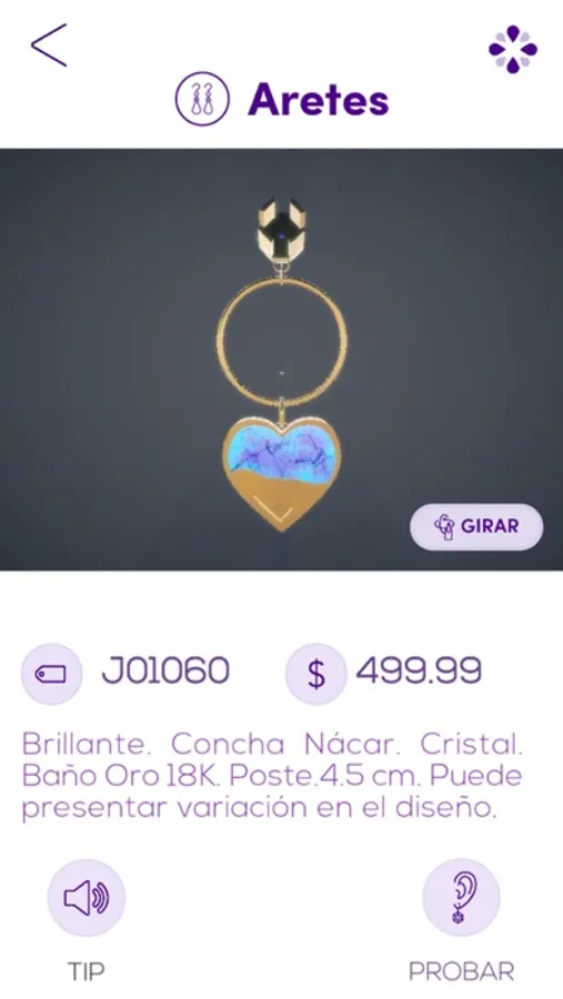 - Probarte aretes, collares, cadenas y pulseras usando tu cámara y la tecnología de Realidad Aumentada