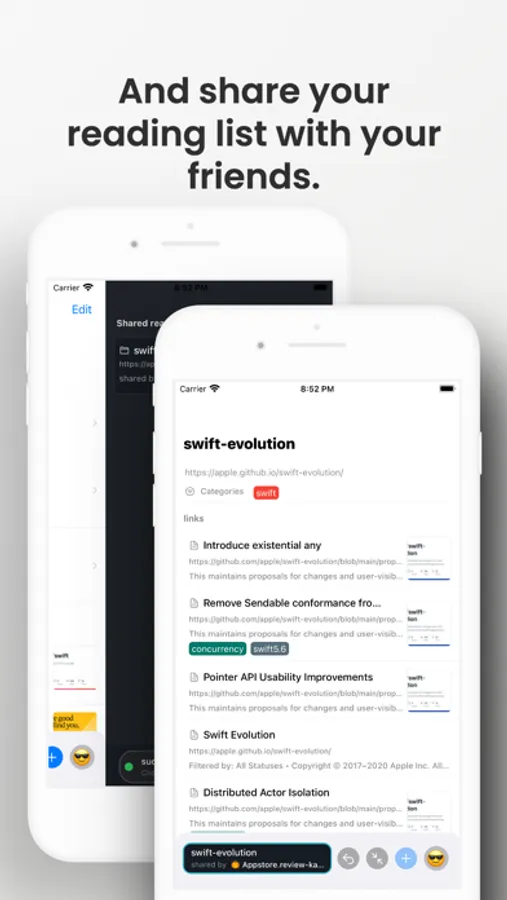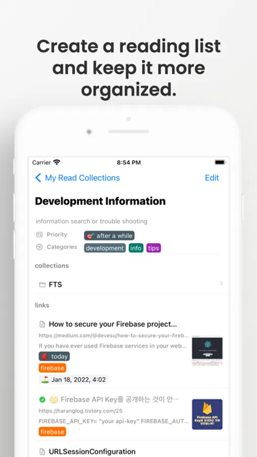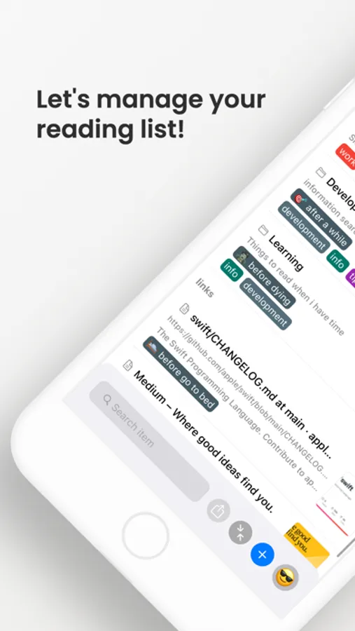 - Create and manage reading lists by foldering links to read. You can also set the reading priority.