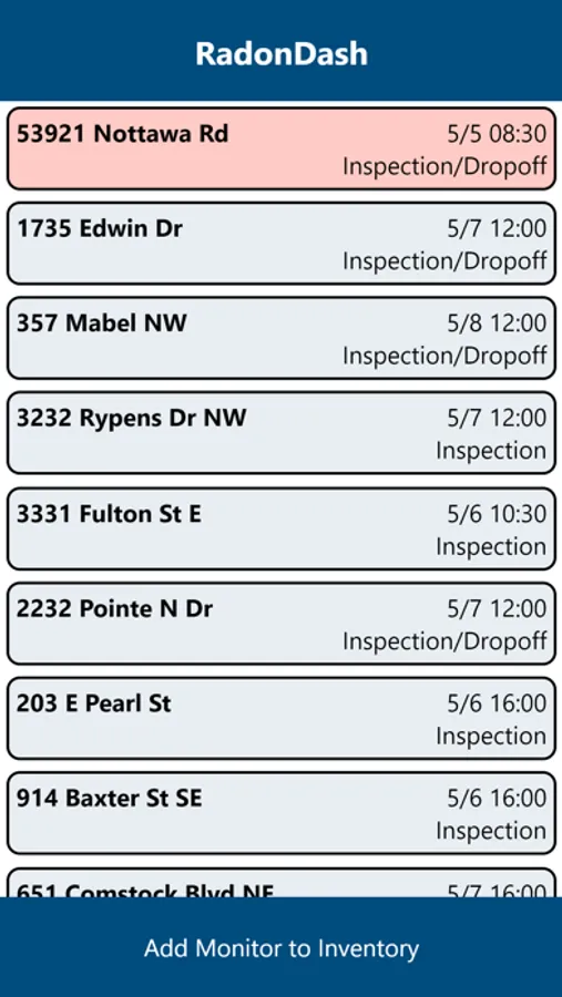 RadonDash.com companion app for radon monitor asset tracking and scheduling