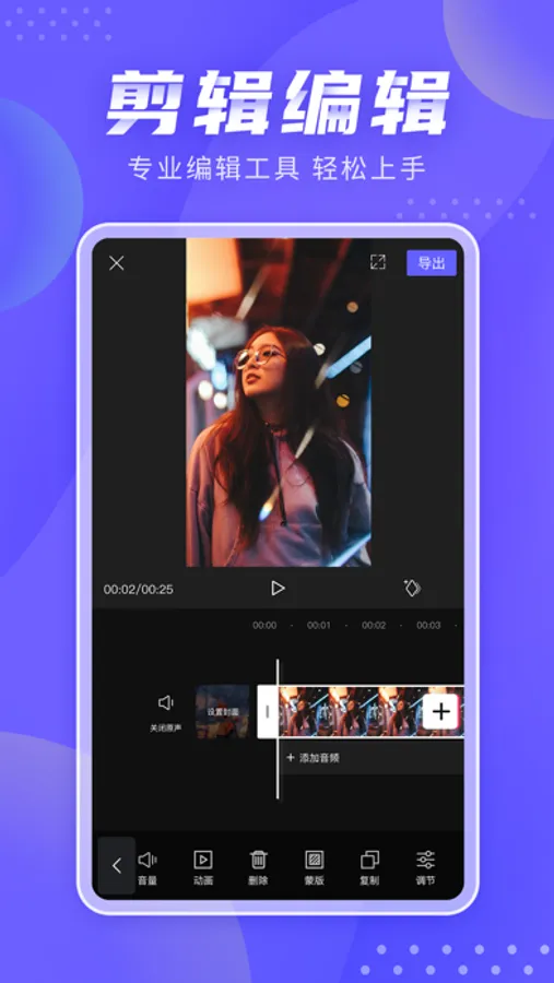 素材拼接剪辑、特效叠加,打破传统复杂的剪辑操作,任何人都可以通过动动手指完成视频编辑。