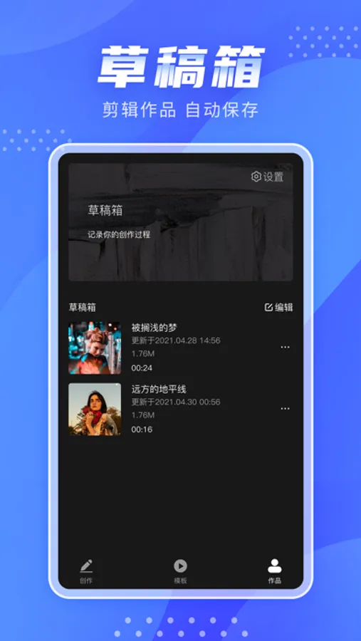 视频太长剪不完?没有关系!草稿箱帮你记录,保存草稿后下次打开极剪继续编辑未完成视频。