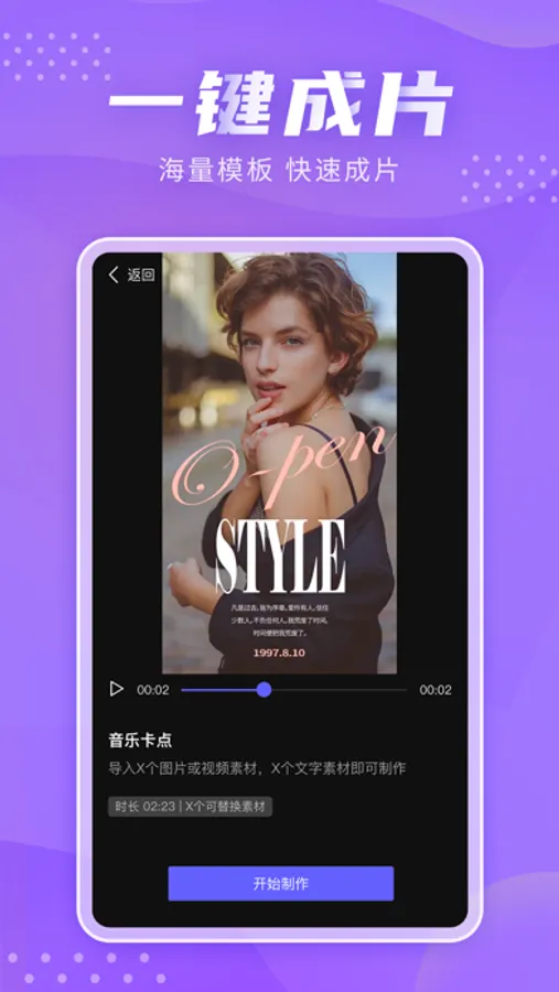 海量视频模板集合地,只需要选择素材,极剪自动根据素材生成精美的视频,当然效果不满意可随时替换下一个。