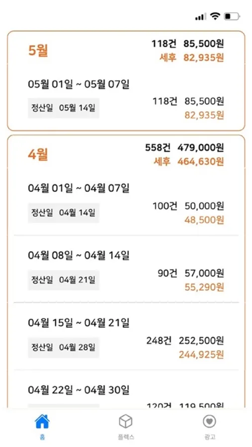플렉스 이력을 스스로 관리하며, 정산 비용을 미리 알아볼 수 있습니다.