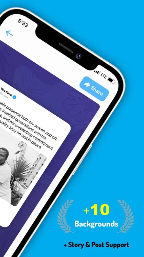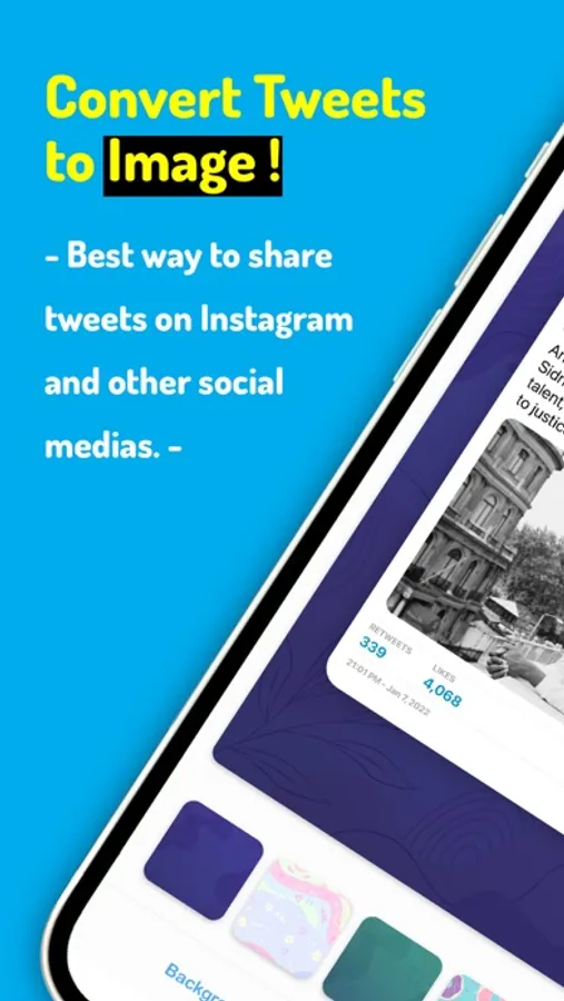 The fastest way to share tweets directly from Twitter to Social media like Instagram with cool backgrounds and themes collection!