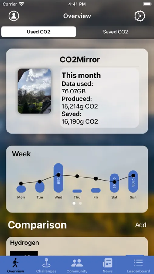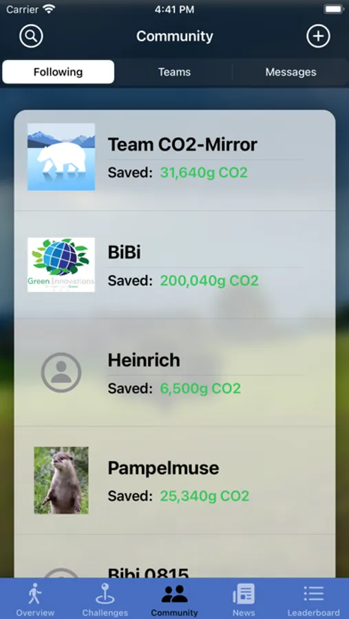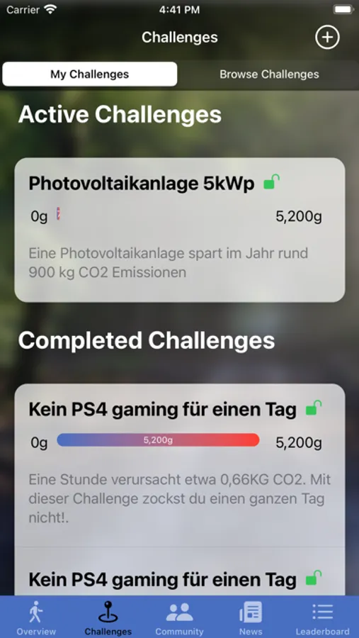 - Save CO2 emissions in your daily life through challenges and challenge yourself every day