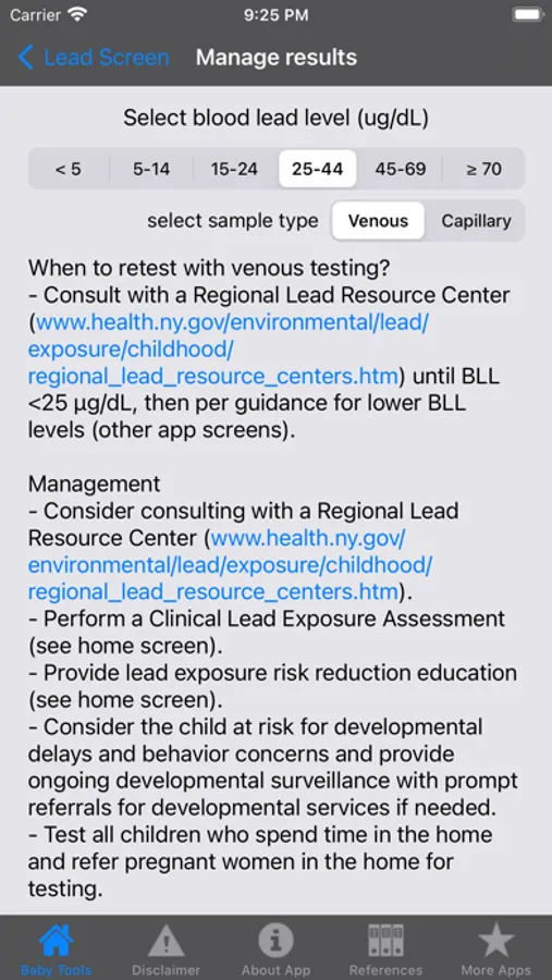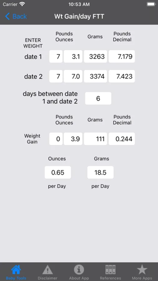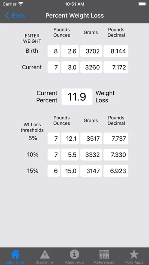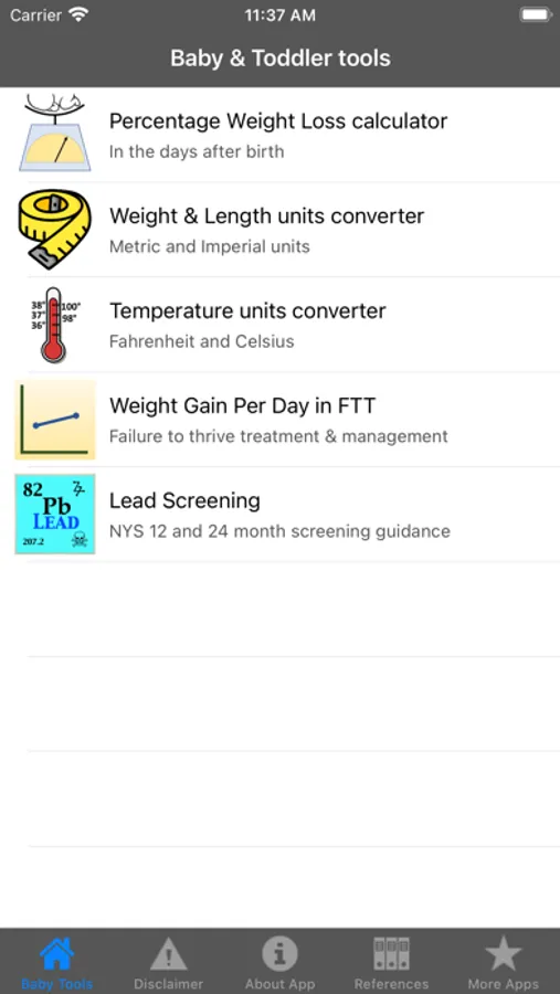 This app is for physicians (not the lay public). This app puts a variety of calculators and decision-support guidance for clinicians caring for newborns, infants, and toddlers. The app quickly and easily lets a clinician enter a birth weight in any units of measure and a current weight in any units of measure, then reports the % weight loss thus far, and shows 5%, 10%, and 15% weight loss thresholds. For failure to thrive (FTT) management and supervised feeding, a clinician needs to calculate weight gain per day over a time interval, which this app does. The app puts all aspects of lead poisoning screening and management (NYS guidelines) at your fingertips. Finally, clinicians have to practice at hospitals and offices where a variety of units are used for length, weight, and temperature. This app converts any measurement into all appropriate units instantly.