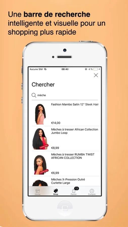 Grâce à notre application Allshades, le shopping des produits de soins, des extensions capillaires et du maquillage n’a jamais été aussi simple ! La navigation est intuitive et la recherche est extrêmement facile. Nous mettons également à votre disposition une fonctionnalité de « recherche visuelle » pour que vous puissiez trouver rapidement vos produits.